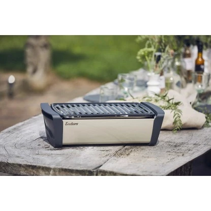 Der Holzkohlegrill aus hochwertigem Edelstahl besticht durch seine hohe Mobilität. Sie können den Grill für Ihren nächsten Campingausflug oder auch auf dem Balkon nutzen. Dank der E-Fan BBQ Lüftertechnologie mit Ventilator ist der Griller besonders leise, raucharm und stufenlos regelbar. Trotzdem müssen Sie nicht auf den typischen Holzkohle-Grillgeschmack verzichten.