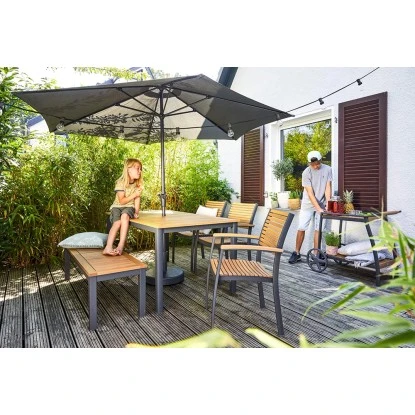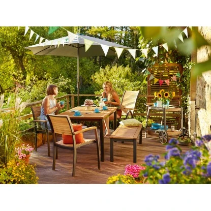 Der rechteckige Gartentisch eignet sich optimal für Feiern mit vielen Gästen in Ihrem Garten oder zum gemütlichen Beisammensitzen bei einem leckeren Essen.