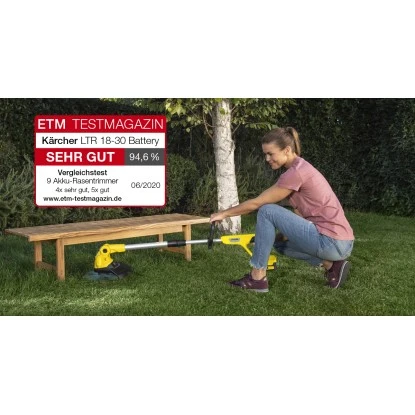 Der Kärcher Akku-Rasentrimmer LTR 18-30 Battery ist ein leistungsstarker Rasentrimmer für den präzisen Grünschnitt von Rasenflächen. Der gedrehte Mähfaden sorgt für präzise Schnitte an Wegen und Terrassen und Sie erreichen auch Engstellen im Garten mühelos. Das Ergebnis ist ein sorgfältig gepflegter Rasen und ein toller Gesamteindruck ihres Außenbereichs.