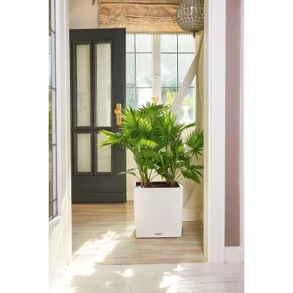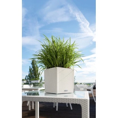 Das Lechuza Pflanzgefäß Cube Cottage ist ein echter Würfel mit gleich langen Seiten und besticht mit genügend Platz für Pflanzen mit größeren Wurzelballen. Die natürliche Flechtoptik des Gefäßes Cube Cottage sorgt für einen stimmigen Look, ob in Eingangsbereichen oder zur Inszenierung von Terrassen. Dank des smarten Bewässerungssystems, dem herausnehmbaren Pflanzeinsatz und der integrierten Überlauffunktion ist der Cube Cottage von Lechuza bestens für die Outdoor-Saison geeignet.