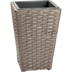 Die Pflanzsäule ist zum Einsetzen von Grünpflanzen und Kräutern auf der Terrasse oder dem Balkon geeignet. Sie besitzt eine quadratische Form in der Größe 28 cm x 28 cm, die zum Boden konisch zuläuft. Die Höhe misst 40 cm. Außen ist der Kasten mit einer matt-grau Flechtoberfläche aus Polyrattan ausgestattet. Zudem besitzt das Gefäß einen herausnehmbaren Einsatz aus Kunststoff, der zum leichten Bepflanzen dient. Damit der Blumenkübel gut steht, ist er mit höhenverstellbaren Füßen ausgestattet. Mit UV- und witterungsbeständiger Eigenschaften kann der Pflanzkasten ganzjährig im Außenbereich genutzt werden.